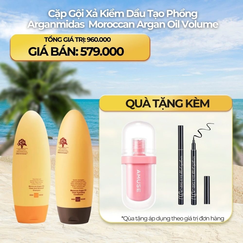 Dầu Argan nguyên chất (Argania Spinosa Kernel Oil): Dưỡng ẩm nhẹ nhàng, giúp tóc mềm mại mà không nặng tóc.