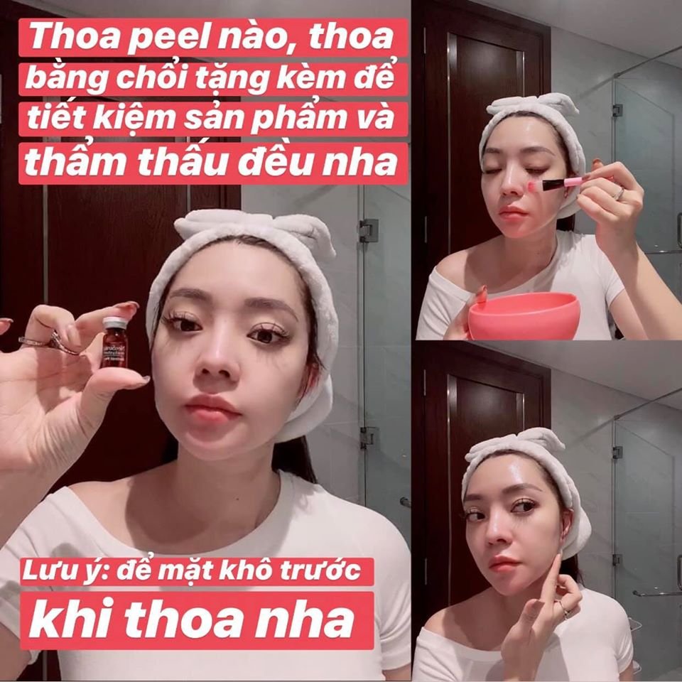 -Sau khi thoa peel xong. Leng sẽ đặt chuông đi ngủ 8 tiếng, để peel thẩm thấu vào da và phát huy tác dụng. Đối với nàng nào da nhạy cảm có thể rửa mặt ngay khi cảm thấy có hiện tượng ngứa rát và không thể chịu được nữa.