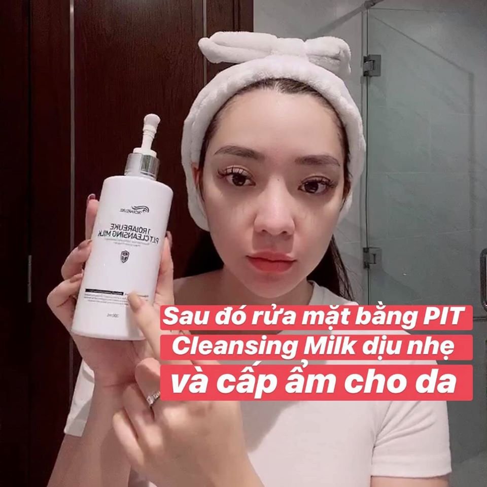 - Rửa mặt bằng Troiareuke PIT cleansing Milk dịu nhẹ để loại bỏ các tế bào chết trên da và cấp ẩm cho da.