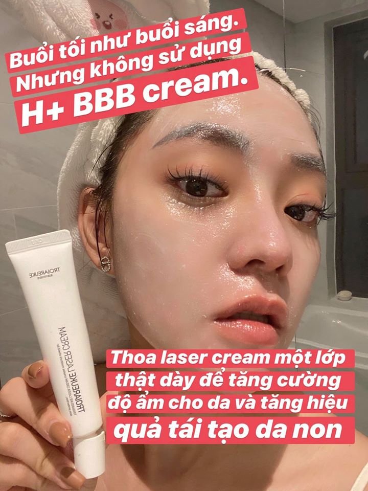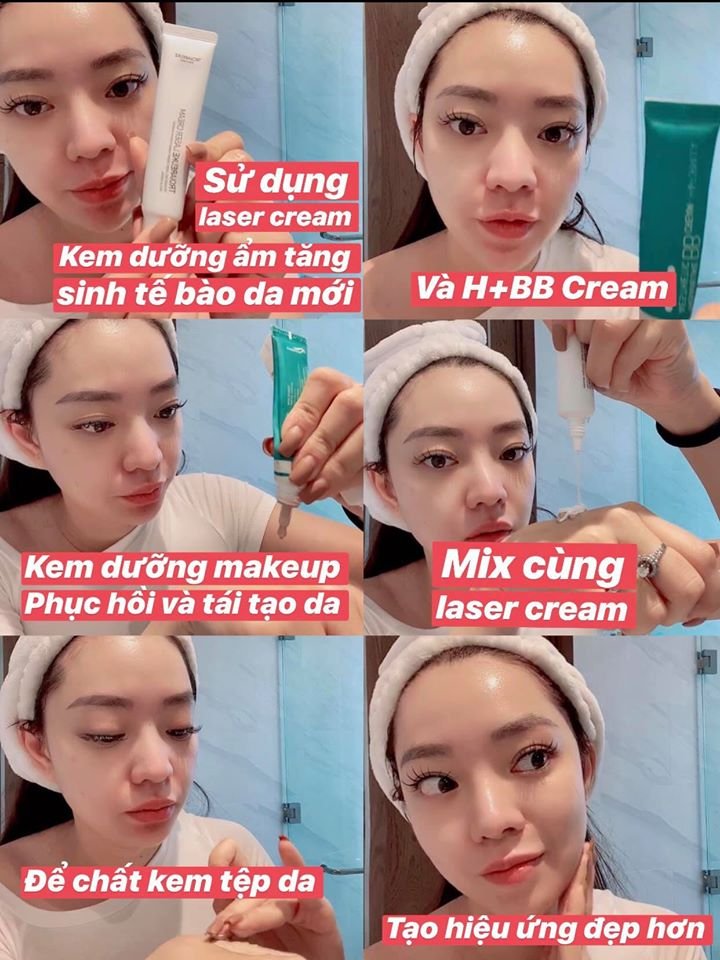 Sau đó Leng sẽ mix H+ BB cream kem dưỡng makeup & phục hồi tái tạo tế bào da và Laser cream kem dưỡng ẩm tăng sinh tế bào da mới để bảo vệ làn da trước khi ra ngoài đường. (Khi ra ngoài Leng luôn phải che chắn khuôn mặt thật kĩ, để da mặt không tiếp xúc với ánh nắng )