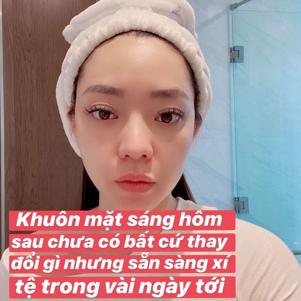 Sau khi ngủ dạy khuôn mặt vẫn chưa có gì thay đổi, nhưng Leng đã chuẩn bị sẵn tinh thần cho những ngày sắp tới da sẽ “xập xệ” (chịu khó xấu vài hôm rồi lại xinh các nàng ạ. Hehe)