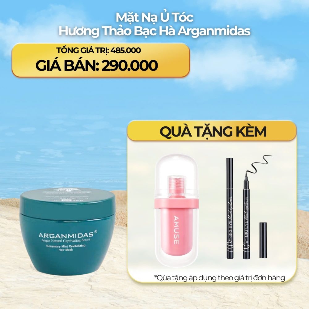 Tinh dầu Argan (Argan Oil): Chiết xuất từ hạt Argan giàu axit béo Omega 6, Omega 9 và Vitamin E, giúp dưỡng ẩm sâu, phục hồi tóc hư tổn, giảm khô xơ, chẻ ngọn, mang lại độ bóng mượt tự nhiên mà không gây bết dính.