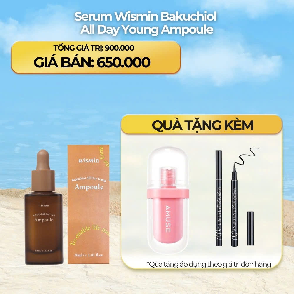 Serum Wismin Bakuchiol All Day Young Ampoule 30ml – Dưỡng trắng & Chống lão hóa