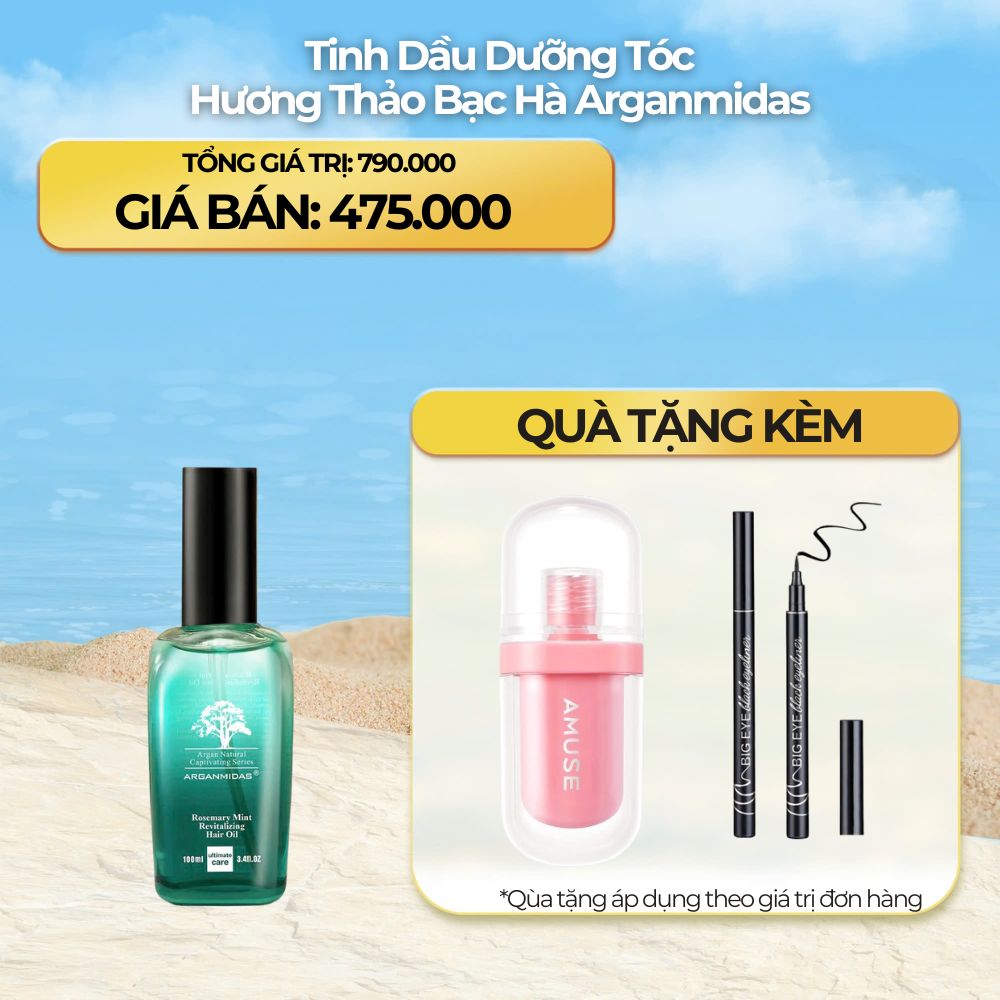 Tinh dầu Argan (Argan Oil): Giàu axit béo Omega 6, Omega 9 và Vitamin E, dưỡng ẩm sâu, phục hồi tóc hư tổn, giảm khô xơ và chẻ ngọn, mang lại độ bóng mượt tự nhiên.