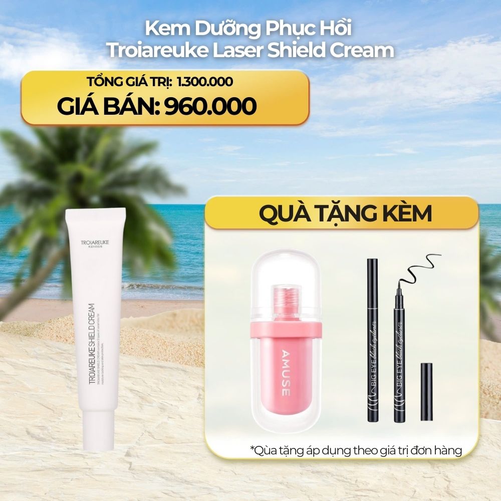 - Với thành phần tự nhiên và công dụng toàn diện, Kem Dưỡng Phục Hồi Troiareuke Laser Shield Cream là giải pháp hoàn hảo cho mọi loại da, đặc biệt là những làn da cần phục hồi và bảo vệ đặc biệt. Hãy để làn da của bạn được chăm sóc tốt nhất với Troiareuke Laser Shield Cream.
